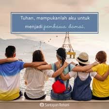Kabar Baik dari Tuhan hari ini untukmu: *“Tuhan menciptakan dan mengutus kita untuk menjadi pembawa damai dan sukacita kepada semua orang yang kita jumpai sepanjang perjalanan kehidupan.”*
