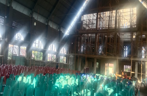 Tampak bagian belakang dalam gereja pusat Paroki SFS Pada